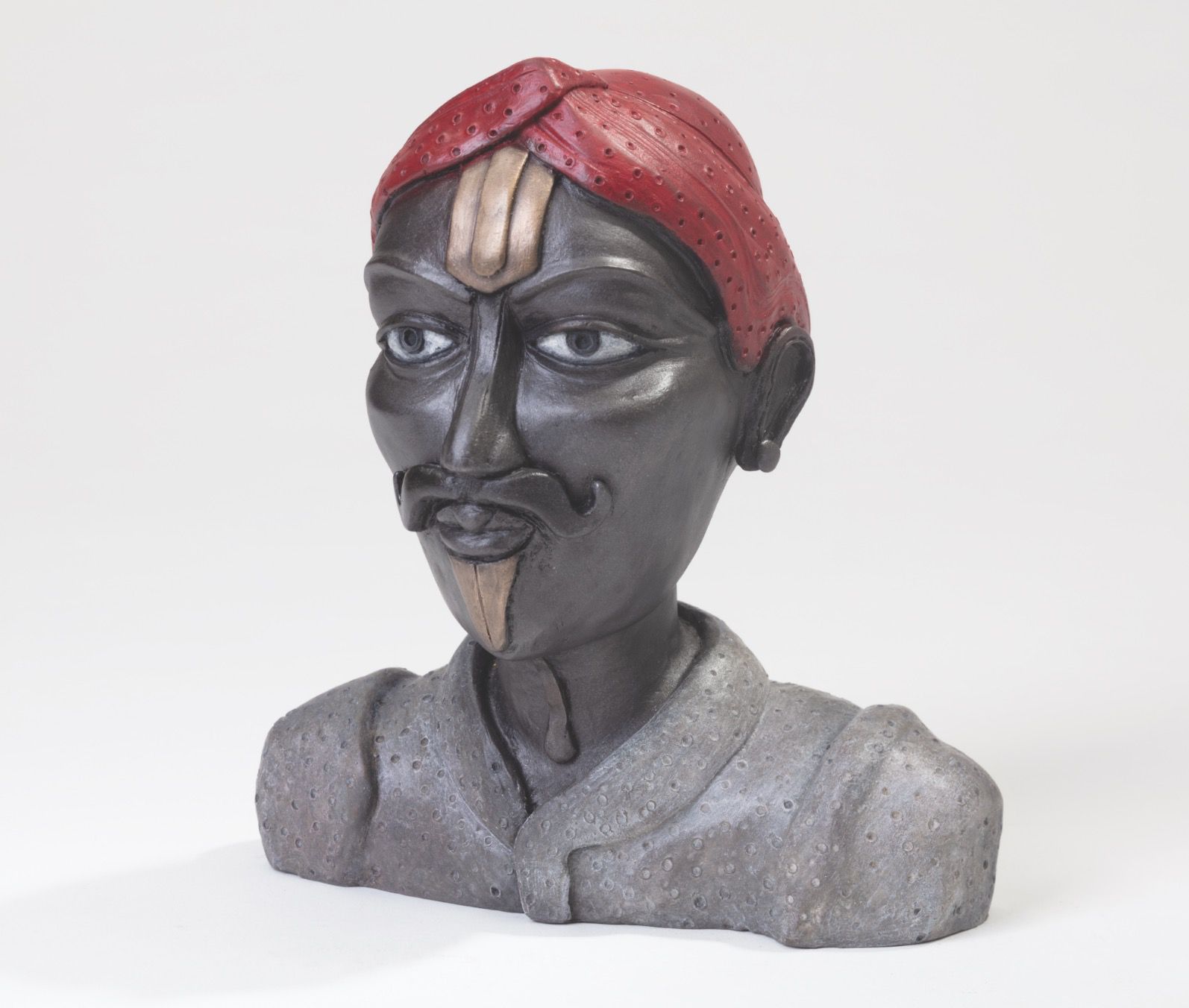 In the work of Thota Vaikuntam, the body becomes monumental. His figures, rooted in rural South India, are defined by bold contours, flattened forms, and a striking stillness. They exist with a sculptural certainty—timeless, self-contained, and imbued with a quiet authority.